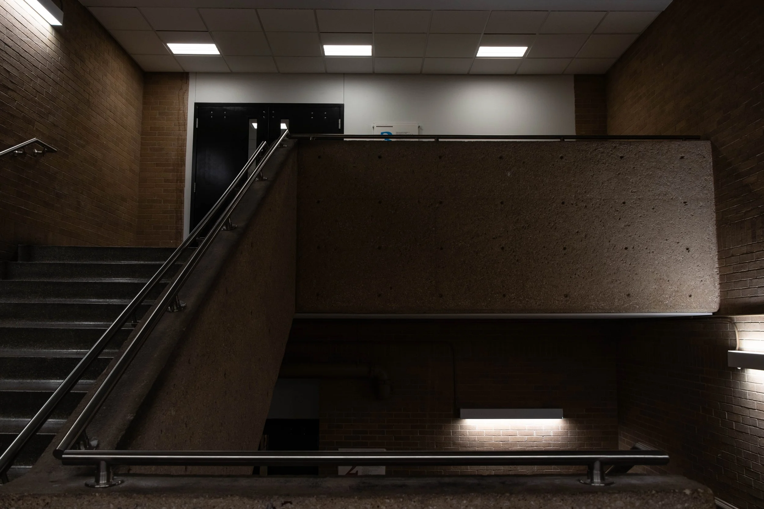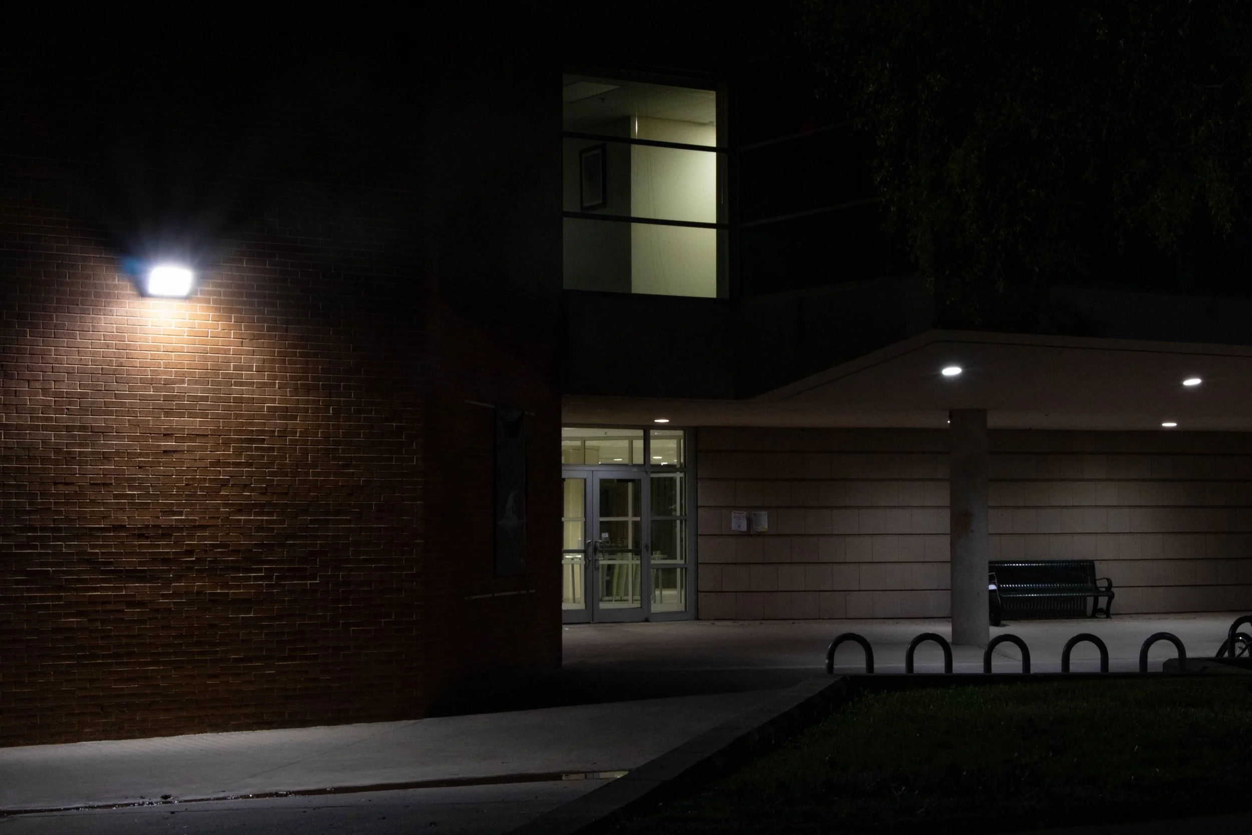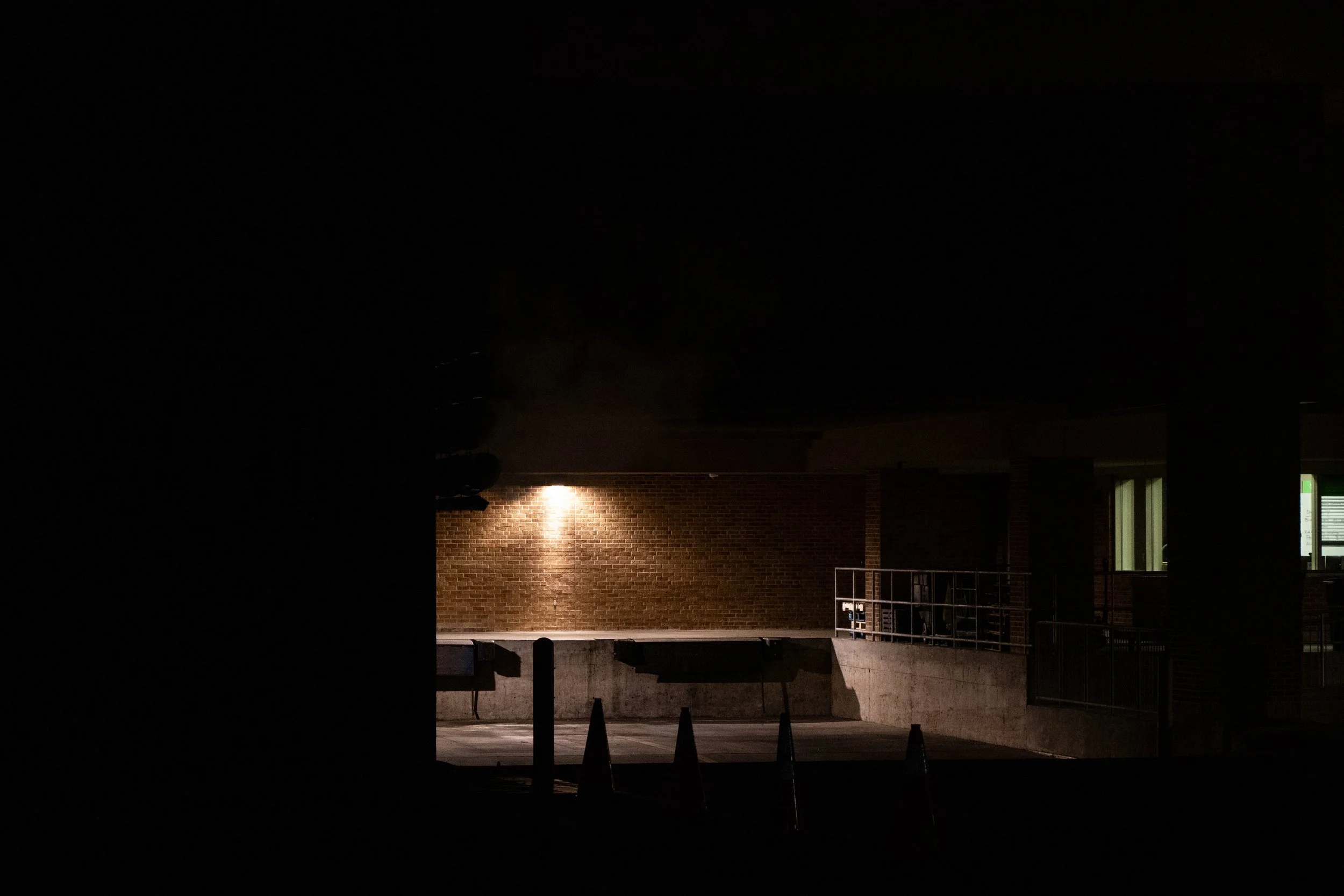 For this project I instead took a walk around campus, focusing mostly on the architecture and outsides of buildings, still capturing forms that caught my eye with light. What I focused on capturing for this project was long hallways and doors, dark outside climates, and other dark places with one prominent light source. Inspiration for this project comes mostly from me wanting to try a slightly different angle on my previous projects. The way these are sequenced is just the path I took on my walk; starting at the CVAD building, walking past the University Union to Highland Street Garage, looking over the edge, and finally walking home, past The Science Research Building Greenhouse.